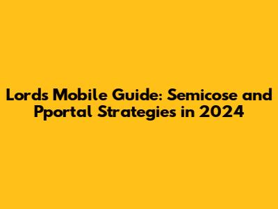 Lords Mobile Guide: Semicose And Pportal Strategies