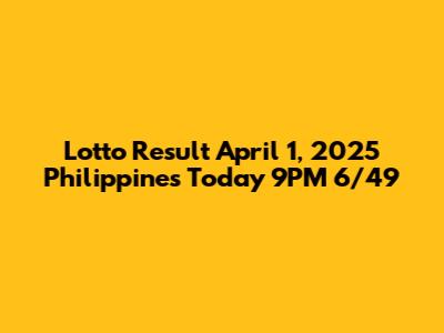 Hey guys! Let's dive into the lotto result for April 1, 2025, specifically focusing on the Philippines' 6/49 draw that happened today at 9 PM. For all you lotto enthusiasts out there, I know how crucial it is to get your hands on those winning numbers ASAP. Whether you're a seasoned player or a newbie hoping to strike it big, understanding the results and the implications is super important. This article will break down everything you need to know about the draw, including the winning numbers, prize tiers, and where to check if you’re holding a winning ticket. I'll also throw in some handy tips and tricks to keep in mind for future draws. So, stick around and let's get started!