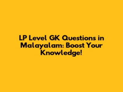 LP Level GK Questions In Malayalam: Boost Your Knowledge!