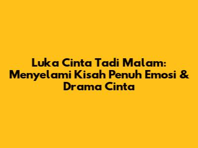 Luka Cinta Tadi Malam full episode telah memikat hati banyak penonton dengan alur cerita yang mendalam dan karakter yang kuat. Bagi kalian yang mencari tontonan yang mampu mengaduk-aduk emosi, serial ini adalah pilihan yang tepat. Drama ini tidak hanya menyajikan kisah cinta yang rumit, tetapi juga menampilkan berbagai isu sosial yang relevan dengan kehidupan sehari-hari. Dalam artikel ini, kita akan membahas secara mendalam tentang serial Luka Cinta Tadi Malam, mulai dari sinopsis, karakter utama, hingga alasan mengapa serial ini begitu digemari.