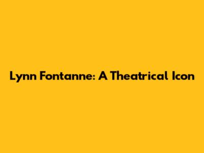 Lynn Fontanne: A Theatrical Icon