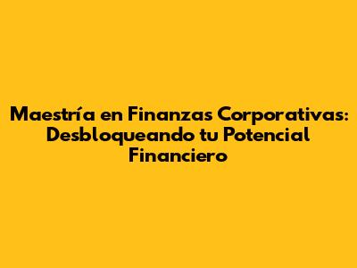 Maestría En Finanzas Corporativas: Tu Camino Al Éxito Financiero