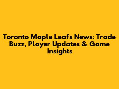 Maple Leafs News: Trade Buzz, Player Updates & Game Insights