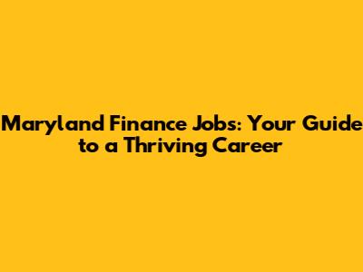 Maryland Finance Jobs: Your Guide To A Thriving Career