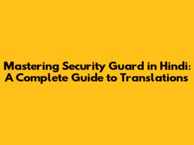 Mastering 'Security Guard' In Hindi: A Complete Guide