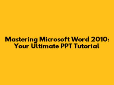 Mastering Word 2010: Your Ultimate PPT Tutorial