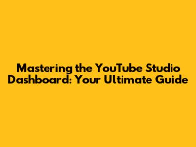 Mastering YouTube Studio Dashboard