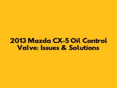 Mazda CX-5 (2013) Oil Control Valve: Issues & Solutions