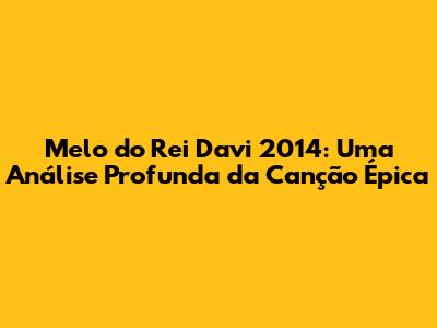 Melo Do Rei Davi 2014: Uma Análise Profunda Da Canção Épica