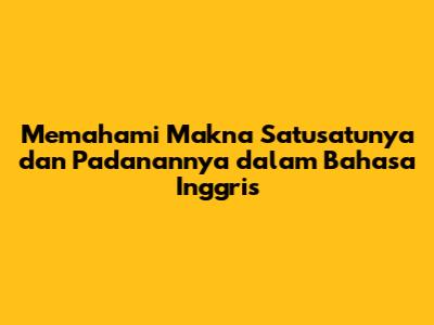 Memahami Arti 'Satusatunya' Dalam Bahasa Inggris: Panduan Lengkap