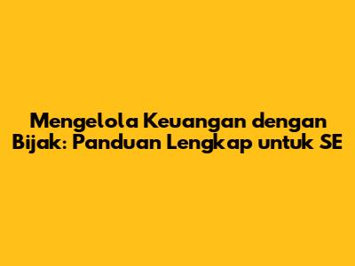 Mengelola Keuangan Dengan Bijak: Panduan Lengkap Untuk SE