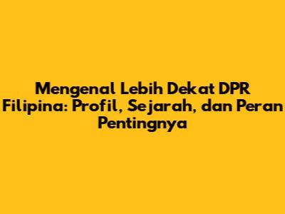 Mengenal Lebih Dekat DPR Filipina: Profil, Sejarah, Dan Peran Pentingnya