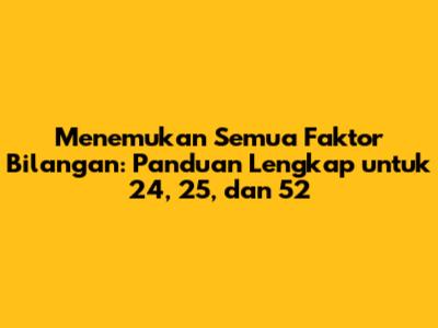 Hai, teman-teman! Pernah nggak sih kalian lagi ngerjain PR matematika atau sekadar penasaran sama angka-angka yang ada di sekitar kita? Salah satu konsep dasar tapi penting banget dalam matematika adalah faktor bilangan. Nah, kali ini kita bakal bongkar tuntas cara mencari semua faktor dari tiga angka yang kece: 24, 25, dan 52. Siap-siap ya, bakal seru dan pastinya gampang dipahami!