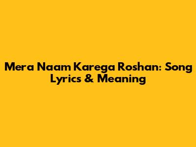 Mera Naam Karega Roshan: Song Lyrics & Meaning