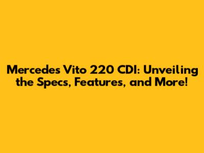 Mercedes Vito 220 CDI: Specs, Features & More!