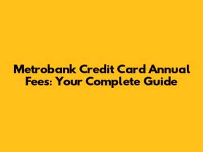 Metrobank Credit Card Annual Fees: Your Guide