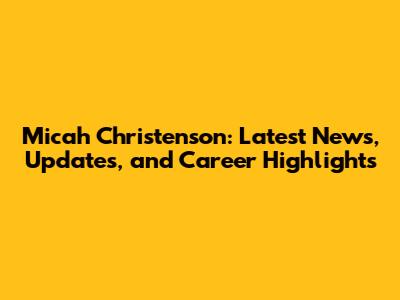 Micah Christenson: Latest News, Updates, And Career Highlights