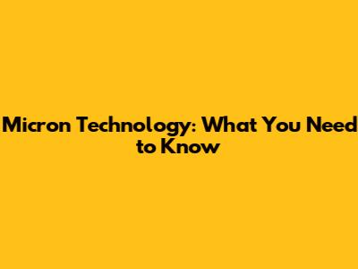 Micron Technology: What You Need To Know