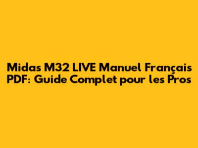 Midas M32 LIVE Manuel Français PDF: Guide Complet Pour Les Pros