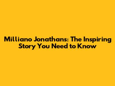 Milliano Jonathans: The Inspiring Story You Need To Know