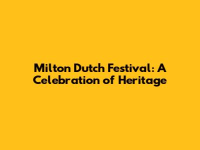 Milton Dutch Festival: A Celebration Of Heritage
