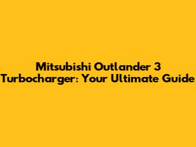 Mitsubishi Outlander 3 Turbocharger: Guide & Troubleshooting