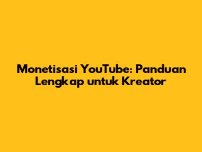 Monetisasi YouTube: Panduan Lengkap Untuk Kreator