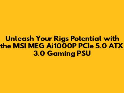 Hey, fellow PC builders and gaming enthusiasts! Are you guys ready to take your rig to the next level? We're diving deep into something seriously cool today – the MSI MEG Ai1000P PCIe 5.0 ATX 3.0 Gaming Power Supply. This isn't just any power supply unit (PSU), oh no. This is the powerhouse designed to fuel your most demanding gaming sessions and creative workflows. If you're rocking the latest high-end GPUs that just guzzle power, or planning a future upgrade that will push the boundaries, then pay close attention. We're talking about unparalleled stability, cutting-edge compatibility, and peace of mind knowing your components are getting the clean, reliable juice they need to perform at their absolute peak. Forget those annoying random shutdowns or performance dips because your PSU can't keep up. The MSI MEG Ai1000P is engineered to handle it all, making it a top-tier choice for anyone serious about their PC build. So grab a snack, settle in, and let's explore why this PSU might just be the missing piece in your ultimate gaming machine.