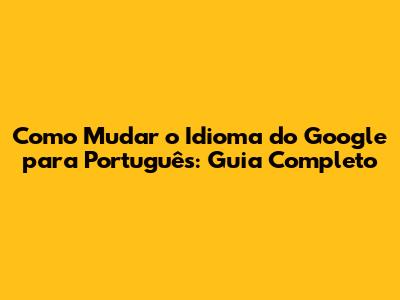 Mudar Idioma Google: Guia Completo Para Português