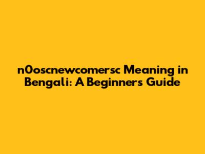 N0oscnewcomersc Meaning In Bengali: A Beginner's Guide