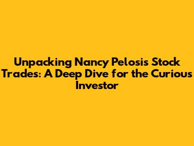 Hey everyone, let's talk about something that's been buzzing in the financial world and even the political arena: Nancy Pelosi's stock trades. You've probably heard the whispers, maybe even seen the headlines. It's a topic that sparks a lot of debate and, frankly, a good dose of curiosity. What exactly is going on with these trades? Are they giving her an unfair advantage? Or is it just standard practice? We're going to break it all down for you, guys, and give you the lowdown on what you need to know, whether you're a seasoned investor or just dipping your toes into the stock market waters. We'll explore the controversies, the regulations (or lack thereof), and what it all means for transparency in politics and investing.