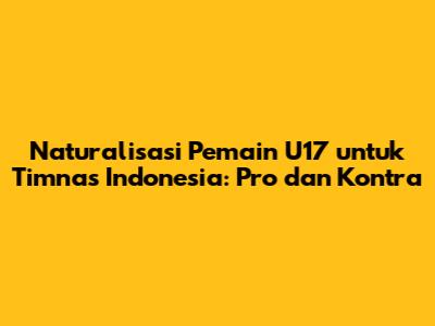 aturalisasi pemain Timnas Indonesia U-17 menjadi topik hangat diperbincangkan di kalangan pecinta sepak bola tanah air. Kebijakan ini diambil sebagai upaya untuk meningkatkan kualitas dan daya saing timnas Garuda Muda di kancah internasional. Namun, di balik harapan yang membumbung tinggi, terdapat berbagai pro dan kontra yang perlu dipertimbangkan secara matang. Dalam artikel ini, kita akan mengupas tuntas mengenai naturalisasi pemain U-17, mulai dari alasan, manfaat, tantangan, hingga dampaknya bagi perkembangan sepak bola Indonesia.
