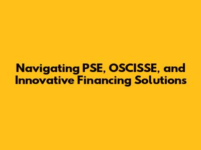 Navigating PSE, OSCISSE, And Innovative Financing Solutions