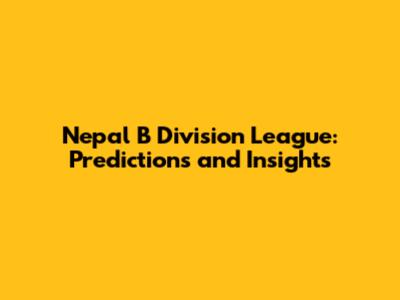 Nepal B Division League: Predictions And Insights