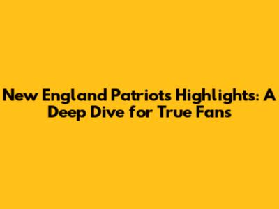 New England Patriots Highlights & Analysis
