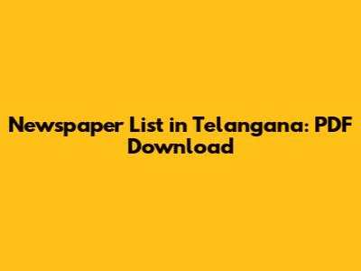 Newspaper List In Telangana: PDF Download