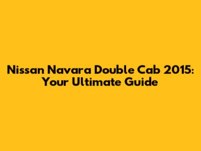 Nissan Navara Double Cab 2015: Your Ultimate Guide