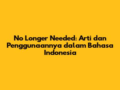 "No longer needed" adalah ungkapan bahasa Inggris yang berarti tidak lagi dibutuhkan dalam bahasa Indonesia. Ungkapan ini digunakan untuk menyatakan bahwa sesuatu yang sebelumnya diperlukan atau penting, kini tidak lagi demikian. Penggunaannya lebih tepat dalam situasi formal, tetapi bisa juga digunakan dalam percakapan sehari-hari selama konteksnya sesuai. Dengan memahami arti, contoh penggunaan, sinonim, dan kesalahan umum dalam penggunaannya, Anda akan semakin mahir dalam menggunakan ungkapan ini dengan tepat. Jadi, jangan ragu untuk mempraktikkannya dalam percakapan dan tulisan Anda. Semoga artikel ini bermanfaat dan selamat belajar!
