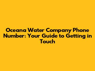Oceana Water Company Phone Number: How To Contact Them