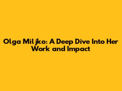 Olga Miljko: A Deep Dive Into Her Work And Impact