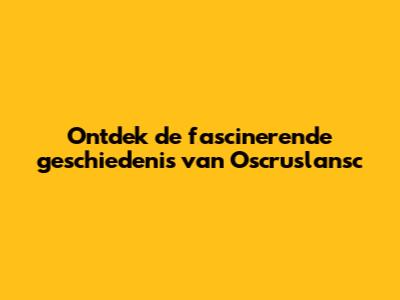 Ontdek De Geschiedenis Van Oscruslansc