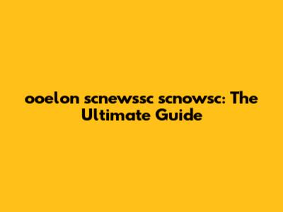 Ooelon Scnewssc Scnowsc: The Ultimate Guide