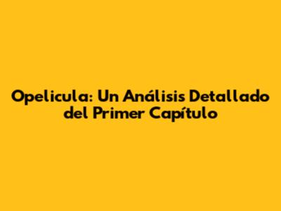 Opelicula: Un Análisis Del Primer Capítulo