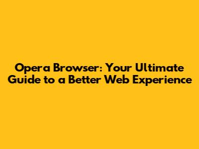 Opera Browser: Your Ultimate Guide To A Better Web Experience