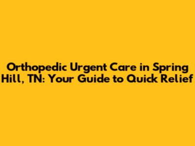 Orthopedic Urgent Care In Spring Hill, TN: Get Relief Now!