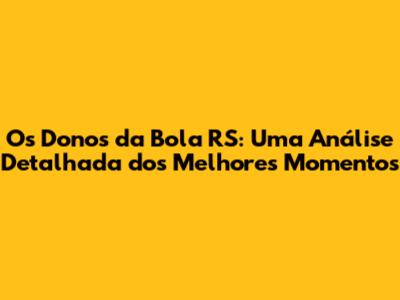 Os Donos Da Bola RS: Onde Assistir Aos Melhores Momentos