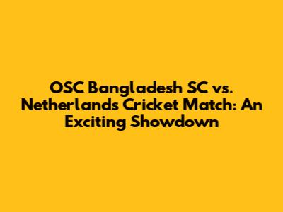 OSC Bangladesh SC Vs. Netherlands Cricket Match: An Exciting Showdown
