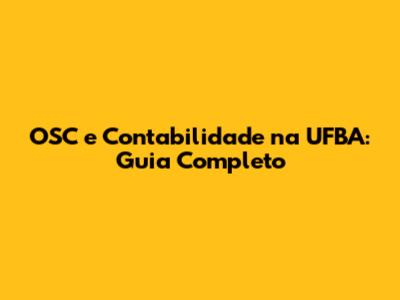 OSC E Contabilidade Na UFBA: Guia Completo