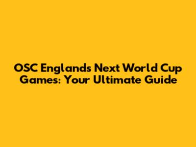 OSC England's Next World Cup Games: Your Guide