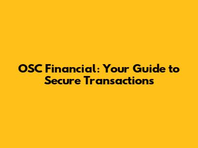 OSC Financial: Your Guide To Secure Transactions